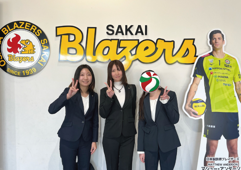 そして、ここからが本題!今後も堺ブレイザーズの試合は続きます。福利厚生として試合観戦ができるので、ぜひこの機会を活用して、みんなで試合を見に行っていただければ嬉しいです♪バレーボールの試合を生で観ると、テレビでは味わえない迫力やスピード感、選手の熱気を肌で感じることができますよ✨「ちょっと気になるな」という方も、ぜひ一度体験してみてくださいね。
