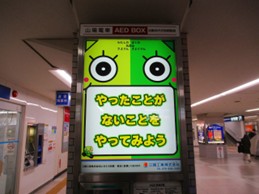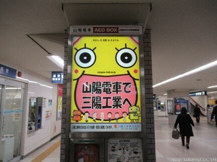 サイネージのすぐ近くにはAED(自動体外式除細動器)が設置されているんです。いざという時に命を守る大切な機器。その場所を覚えておくための目印として、「三陽工業のサイネージの近く!」と記憶していただけると、もしもの時に役立つかもしれません。こういうところでも、ちょっとだけ社会貢献できている感じがして、なんだか嬉しく思います。
