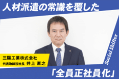 そんな中で、製造業と共に製造派遣事業も行う三陽工業がどうやって業界が抱える問題解決に挑んでいるのか、業界の常識を変えようとしているのかを詳しくご紹介いただいています。